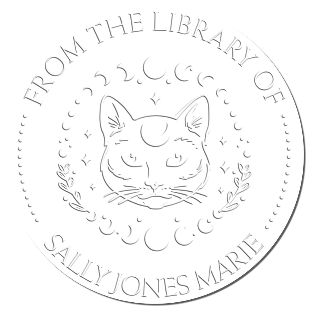 Transform Your Embossing Experience! Our Hybrid Seal Embossers are designed to deliver crisp, clear impressions that will make your books stand out. With an impressive 1-5/8" diameter, this embosser features a whimsical design of a witchy Magical Cat surrounded by enchanting half moons and stars. The top arc can proudly display phrases like "This Book Belongs To" or "From The Library of," while your name or a custom saying graces the bottom arc, separated by a charming line of dots.