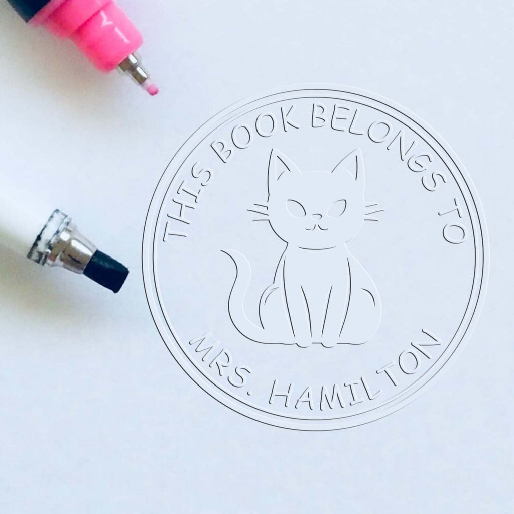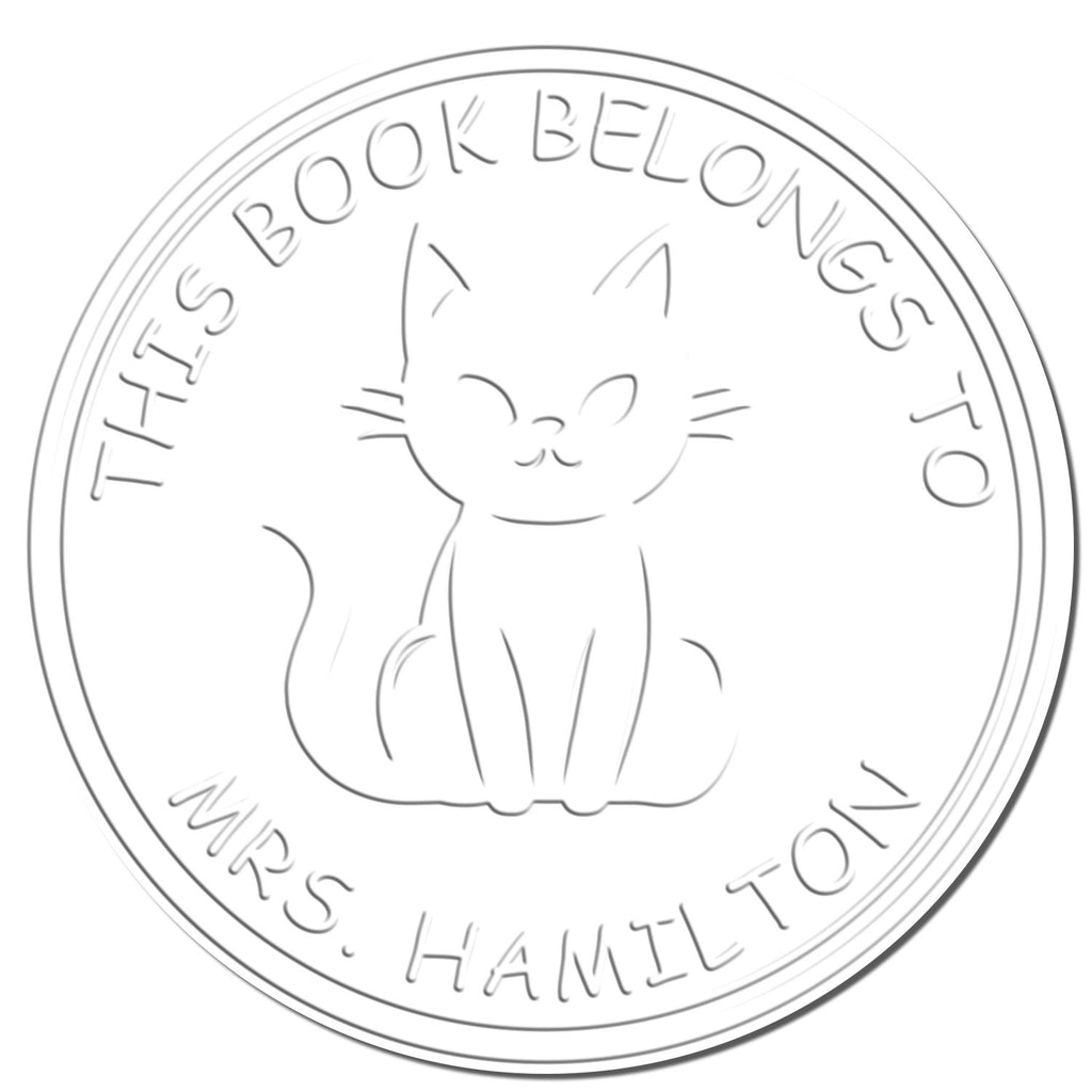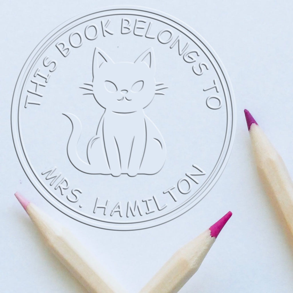 Unique Design Features This book stamp features a center image of a Mysterious Minx, surrounded by a double concentric solid circular border. The words "From The Library of" grace the top arc, while the bottom arc proudly states, "Read it, Love it, Return it." With an impression size of 1-5/8" in diameter, this embosser is perfect for making your mark on your literary treasures.