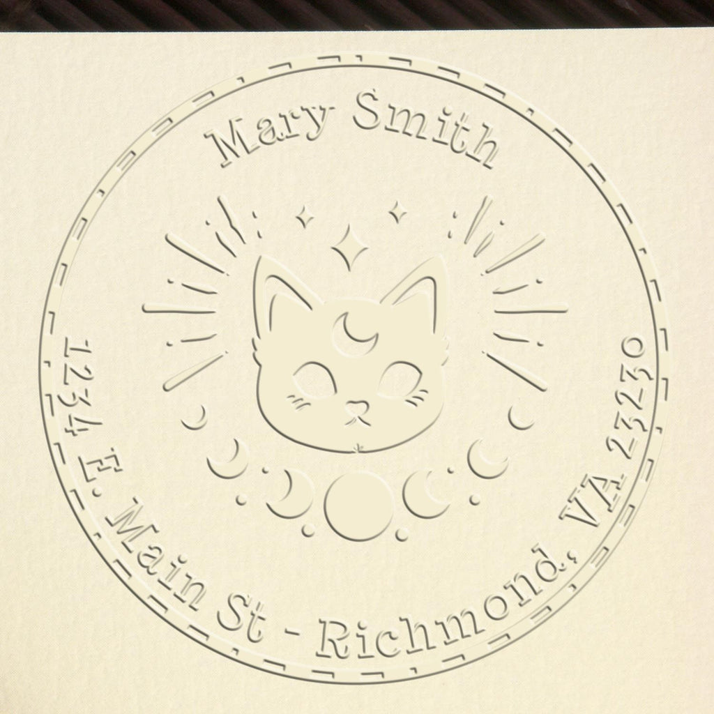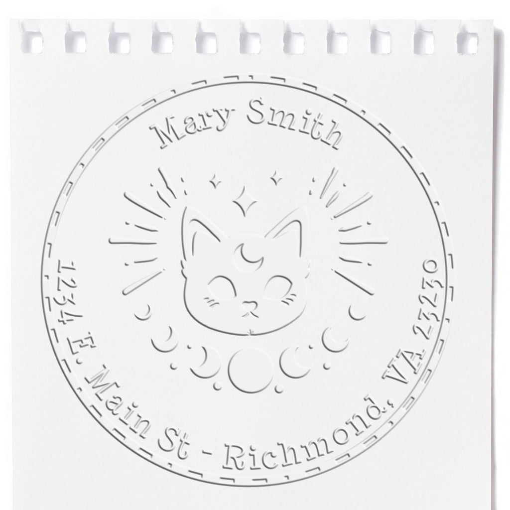 Upgrade to Our Hybrid Mystical Cat Custom New Home Embossed Stamp Today! For unparalleled comfort, portability, and performance, make the switch today. With our hybrid seal embossers, every impression you make will be a statement of excellence. Perfect for cat lovers and anyone who enjoys adding a personal touch to their correspondence, this embosser is a must-have.