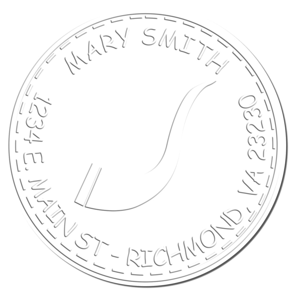 Perfectly Sized for Any Project With an impression size of 1-5/8" in diameter, our Hybrid Noble Shofar embosser is the ideal size for a variety of projects. Whether you’re stamping invitations, thank you cards, or business correspondence, this embosser will deliver crisp, clear impressions every time. The double ring circular border, featuring a solid outer line and a dashed inner line, adds a touch of elegance, while your name and address are beautifully displayed in the top and bottom arcs.