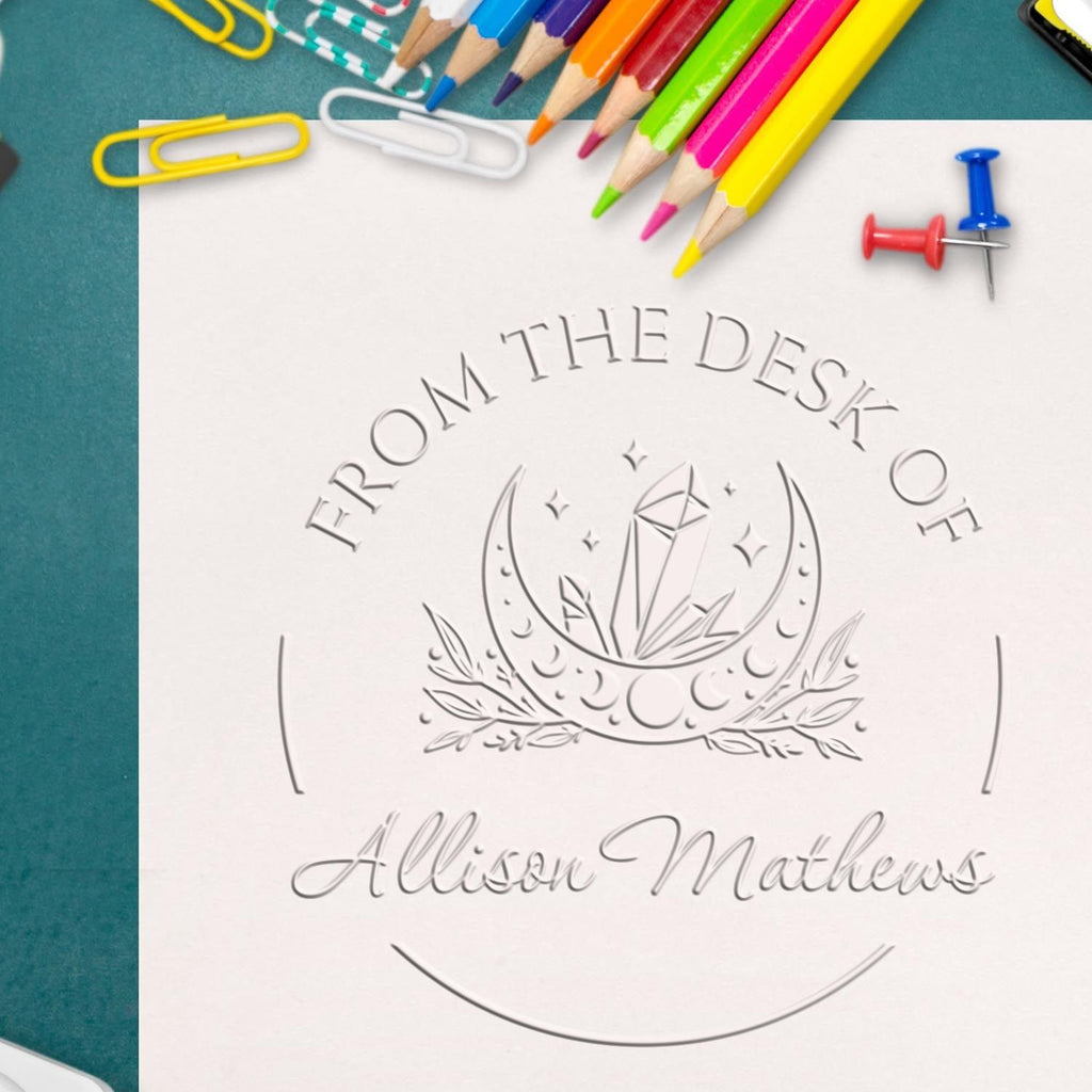 - PREMIUM QUALITY DESIGN: Transform your fantasy book collection with our mystical 1-5/8" diameter embosser featuring an enchanting Otherworldly Sky Moon, crystals, and stars design. Makes clear, professional impressions every time. Perfect for marking your magical library.