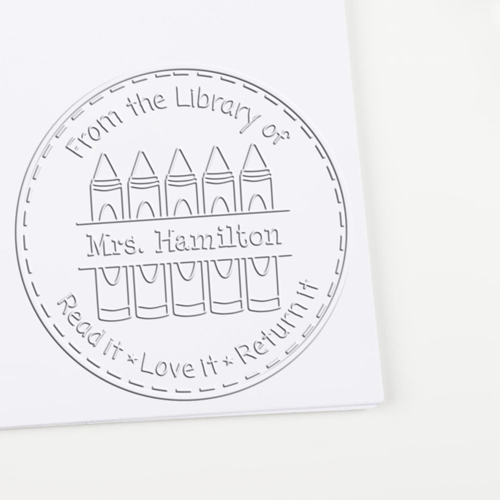 Transform Your Classroom Library with Our Exclusive Hybrid Outline Crayons Personalized Book Ownership Embosser - The Perfect Blend of Style and Function for Educators!