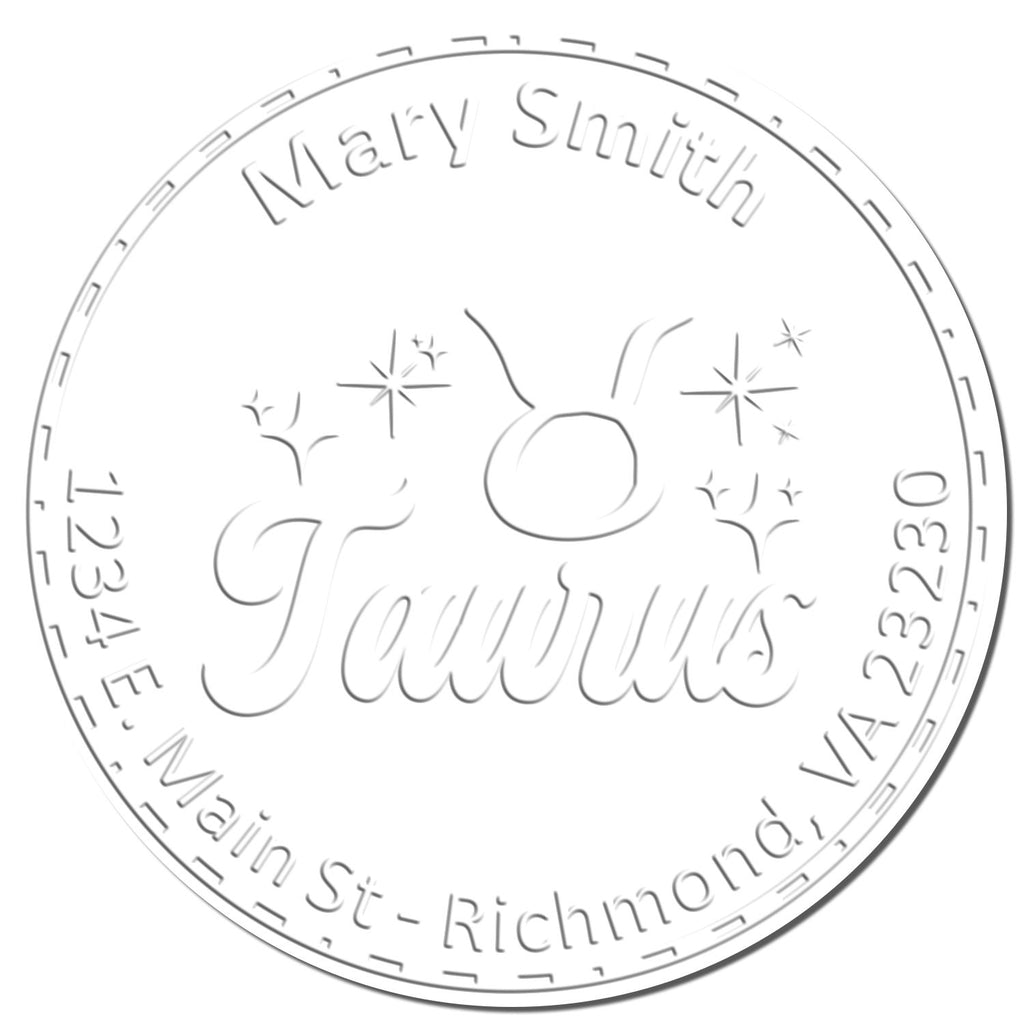 Artistic Touch for Your Correspondence What sets our embosser apart is its stunning design. Featuring the Taurus Zodiac Symbol in a beautifully scripted font, this celestial address stamp is adorned with a solid circle border filled with charming white dashes and dots. Your name elegantly arcs at the top, while your address or a personalized saying graces the bottom arc. This decorative design allows you to add artistic elements to your mailings, transforming ordinary envelopes into extraordinary pieces of art.