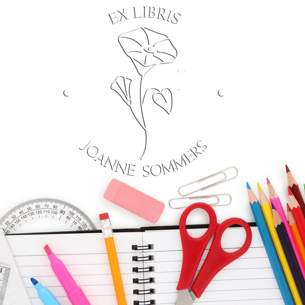 Unleash the Power of Cutting-Edge Embossing Technology! Crafted for the discerning professional, our hybrid seal embosser delivers crisp, professional impressions that enhance your brand's image with every use. The stunning design features a center image of the September birth month flower, the Morning Glory, surrounded by elegant phrases such as "This Book Belongs To," "From The Library of," and "Ex Libris." With an impression size of 1-5/8" in diameter, this embosser creates a lasting mark that adds sophistication to your books.