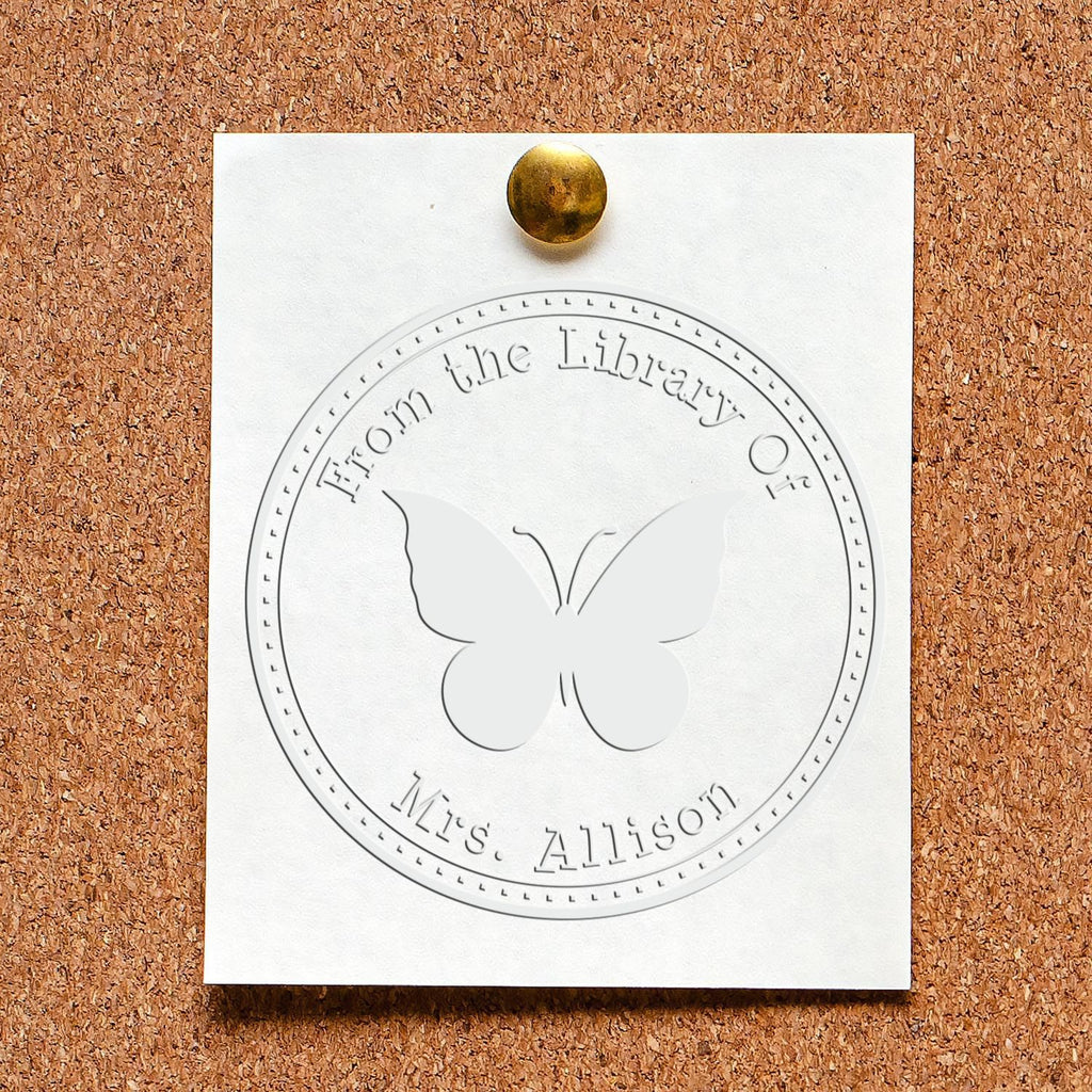 - VERSATILE DESIGN: Beautiful three-ring border with serene butterfly motif makes this embosser perfect for personal libraries or thoughtful gifts. Customizable text options include "Ex Libris" or "From The Library Of."