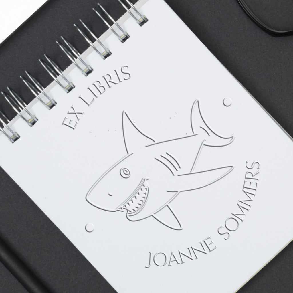 Hybrid Sneaky Shark Custom Made Book Ownership Label Embossing Seal Highlights and Features