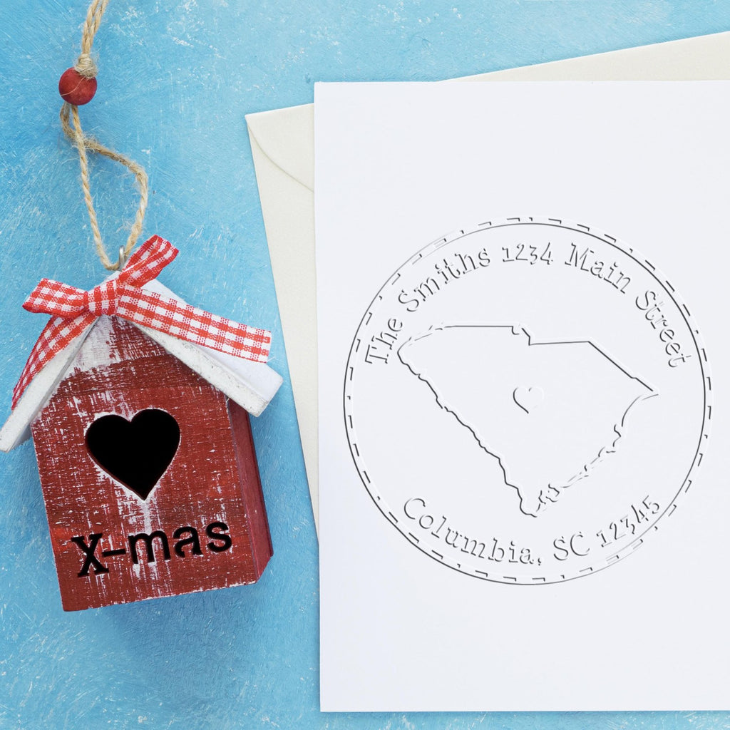 Hybrid South Carolina Personalizable Mail Address Embossed Stamp Highlights and Features