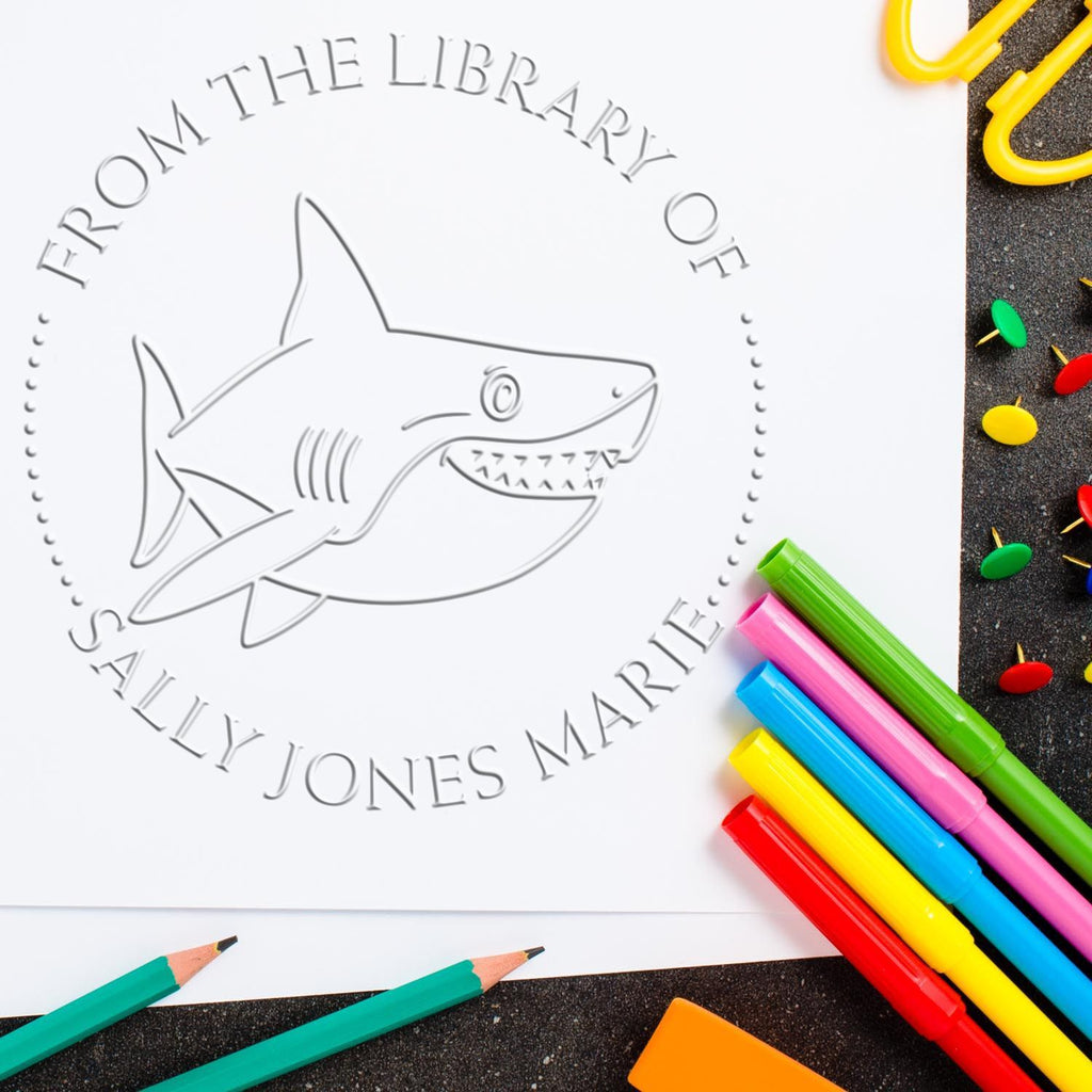 Elevate Your Book Collection with the Hybrid Swift Shark Custom Made Book Ownership Embossing Seal!