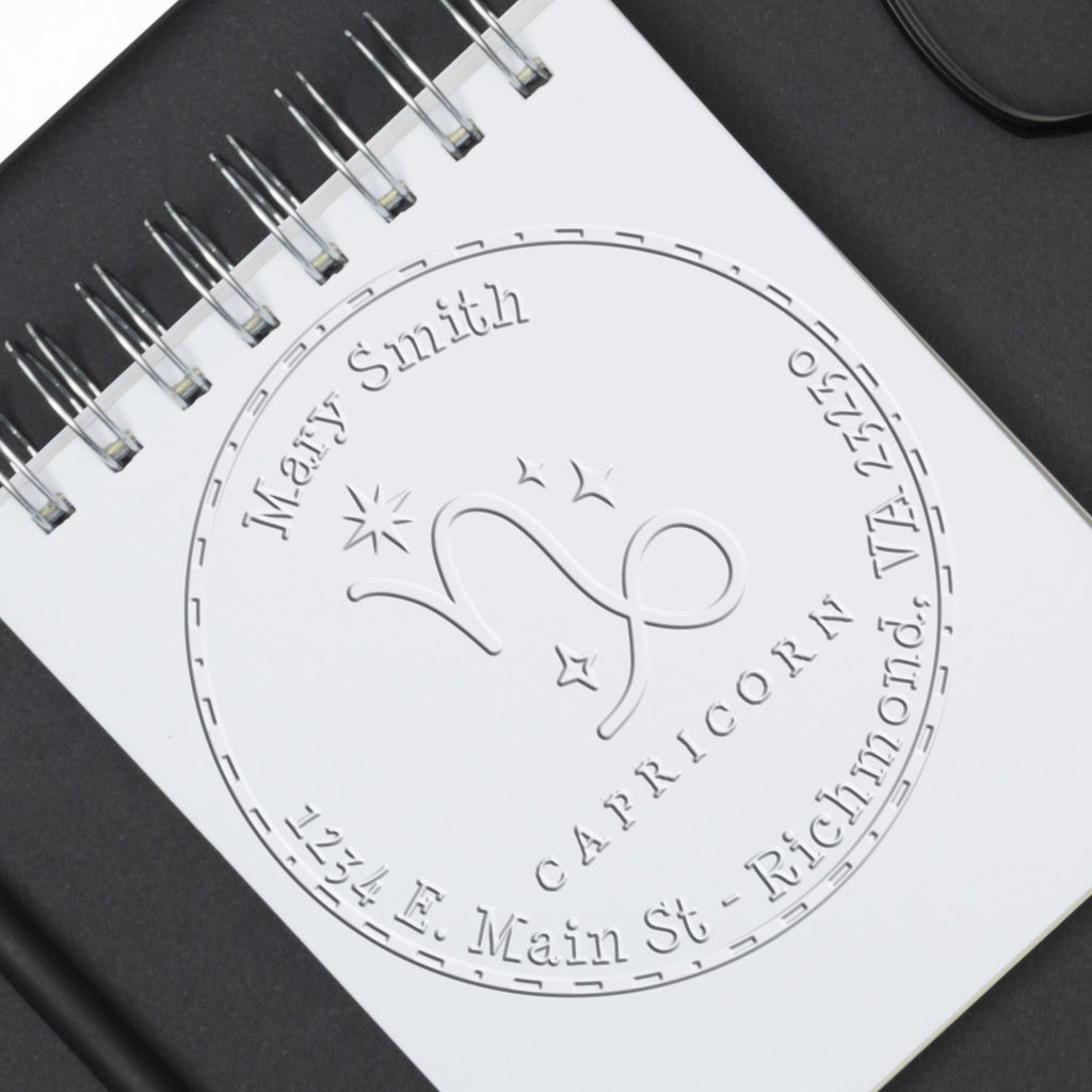 - ADD A COSMIC TOUCH! Featuring the majestic Capricorn zodiac symbol, this embosser reflects your personality and style. With a unique design surrounded by stars, it transforms ordinary envelopes into celestial masterpieces!