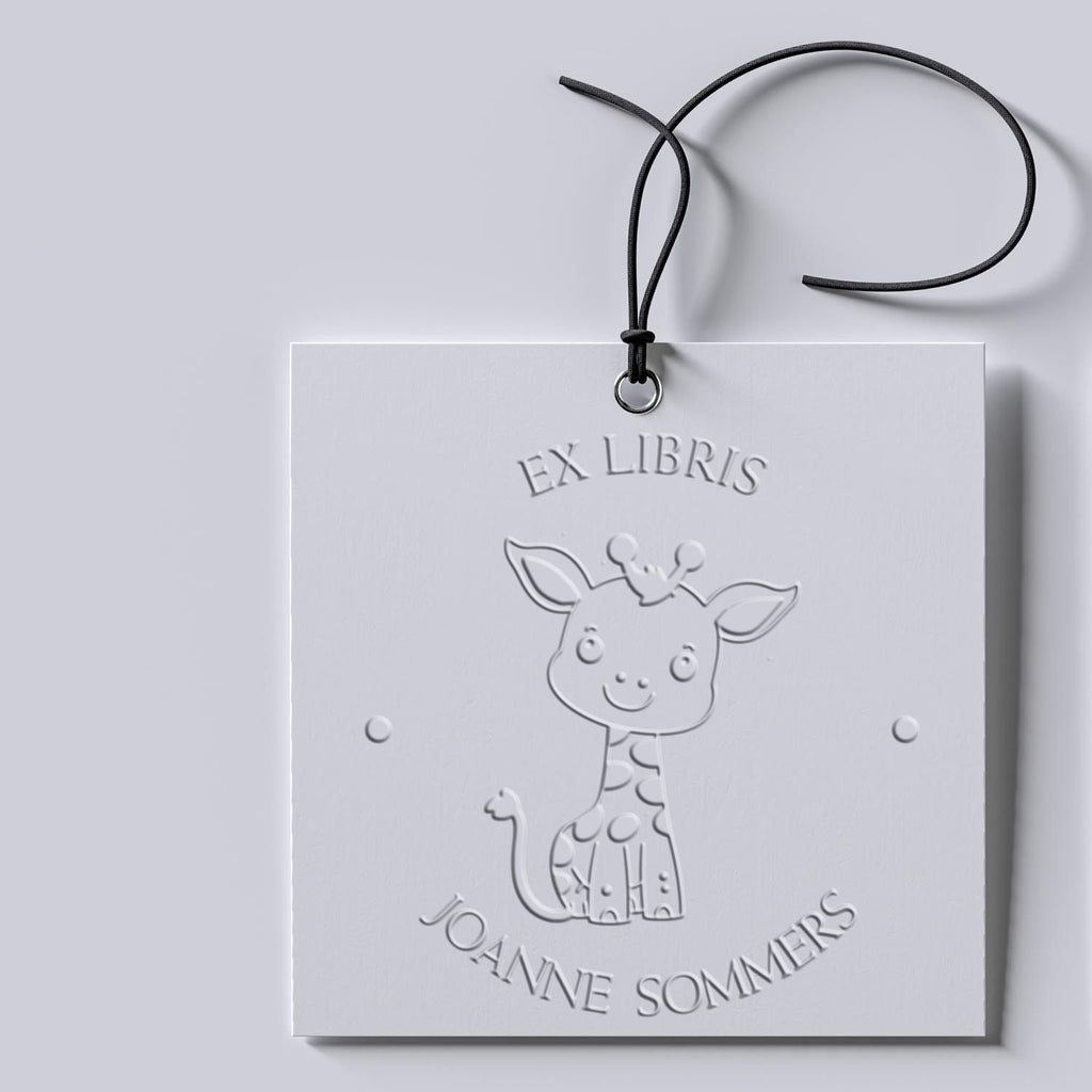 - CUSTOM PERSONALIZATION OPTIONS: Choose from various text options including "From The Library Of" or "Ex Libris" with your personalized name. Each impression features an adorable Timid Giraffe centerpiece design.