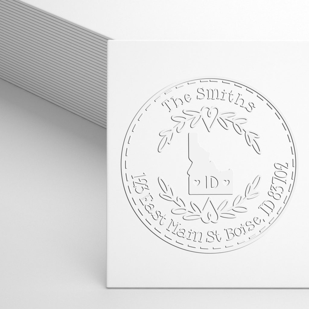 - ELEVATE YOUR CORRESPONDENCE with our Idaho Decorative Wreath Customizable Name and Address Hybrid Embosser! Transform ordinary letters into extraordinary keepsakes with crisp, raised impressions that exude elegance and sophistication. Perfect for new homeowners looking to personalize their front door decor!