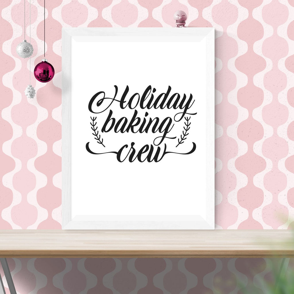 perfect for holiday card makers and small bakeries, the flowing black script reading “Holiday baking crew” with delicate swashes adds a handcrafted, festive flair to greeting cards, gift tags, recipe cards, boxes, ribbons, and tissue wraps.