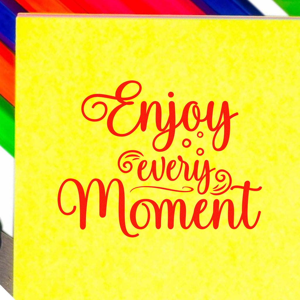 - Elevate style: Elegant black calligraphy reads “Enjoy every Moment” with whimsical swirls for an instant boutique look that raises perceived value on every favor or product.
