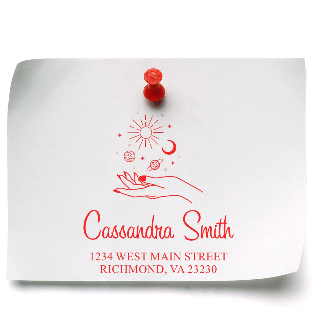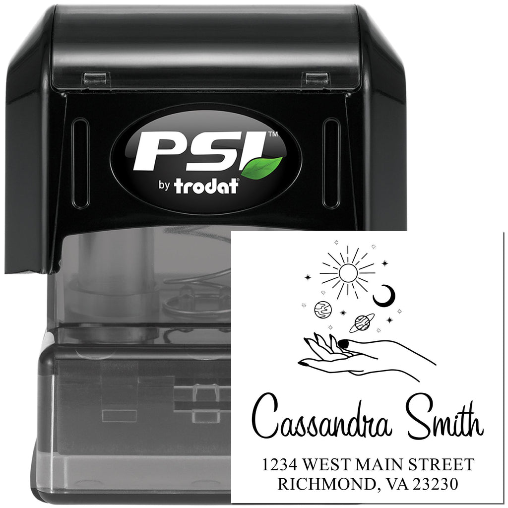 - PROFESSIONAL IMPRESSION: Elevate your correspondence with this unique celestial-themed address stamp, featuring precise pre-inked technology that delivers up to 15,000 crisp impressions. Perfect for astrology enthusiasts and creative professionals.