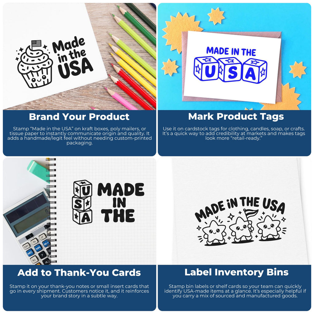 For small bakery owners, event planners, and patriotic treat makers, this Made in the USA logo stamp is a powerful way to boost perceived value and create a cohesive theme customers will love. Why shop with ESS? Because speed and quality matter, and we deliver dependable, high-quality rubber stamps quickly so you can start using yours right away. Order today and give your cupcakes the proud, professional look they deserve.