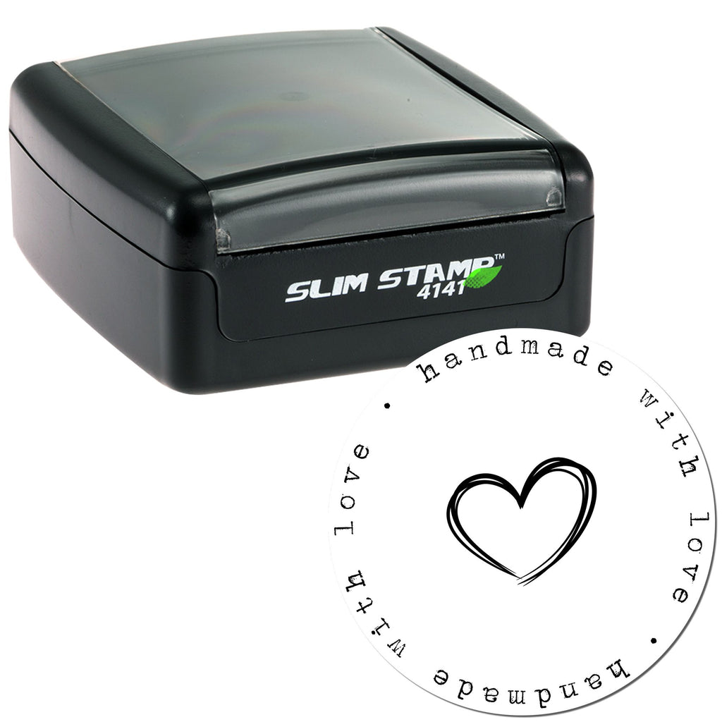 Introducing our charming custom stamp! This design showcases a simple, rustic circle that exudes warmth and authenticity. Around the edge, you'll find "handmade with love" elegantly repeated in a vintage typewriter font, separated by tiny dots for a touch of whimsy. At the heart of the stamp lies a hand-drawn heart, sketched with a delightful, rough texture that adds a personal, handcrafted feel. Perfect for adding a loving touch to your creations!
