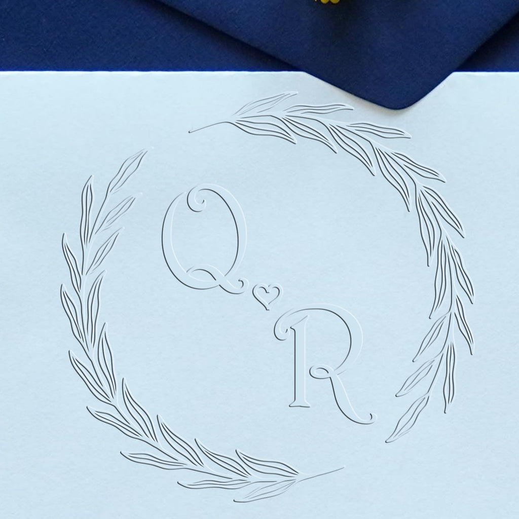 Unlock the art of precision with the Love Laurel Monogram Hybrid Custom Monogram Seal, where elegance meets innovation. Designed for the discerning bride-to-be, this embosser transforms wedding invitations into cherished keepsakes, adding a personal touch that speaks volumes. With a chic circular wreath of sleek, flowing leaves, and the initials "Q" and "R" elegantly nestled within, this 1-5/8" round stamp is the epitome of sophistication and timeless charm.
