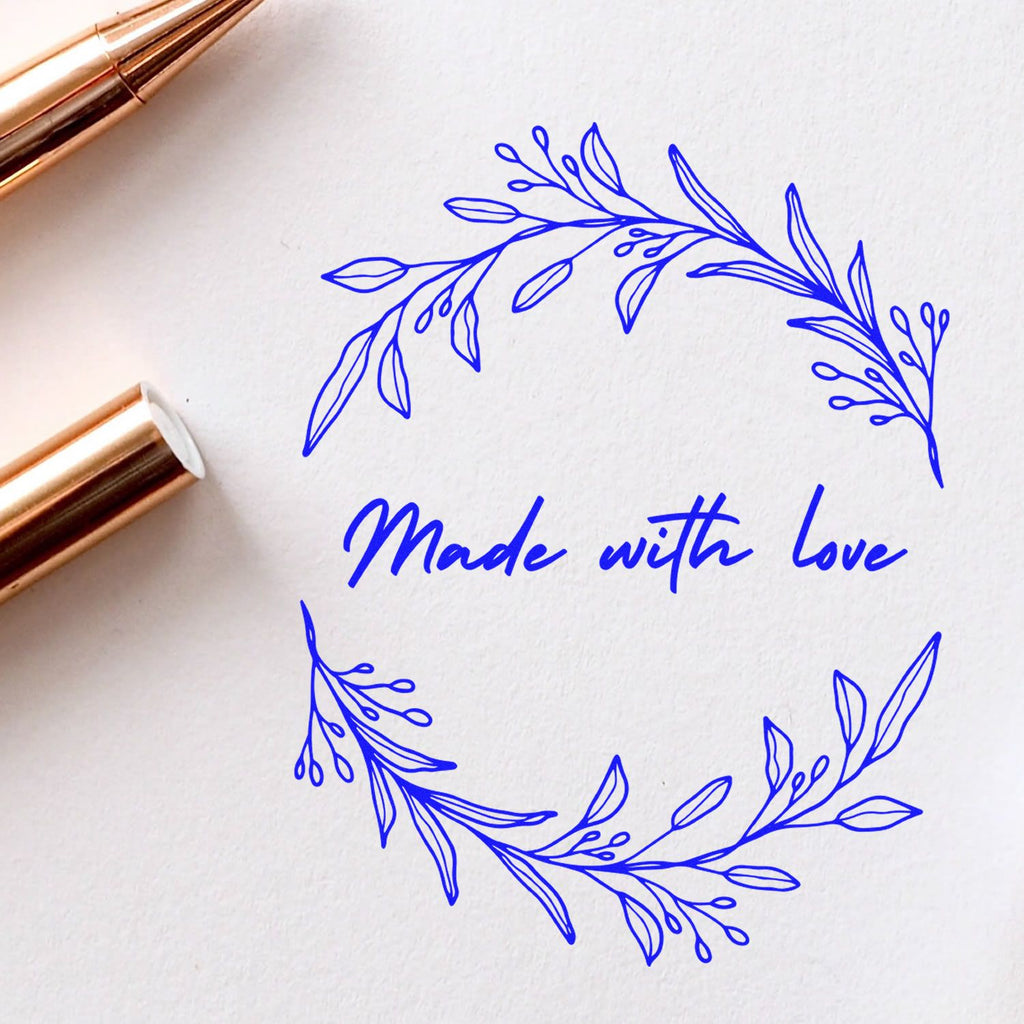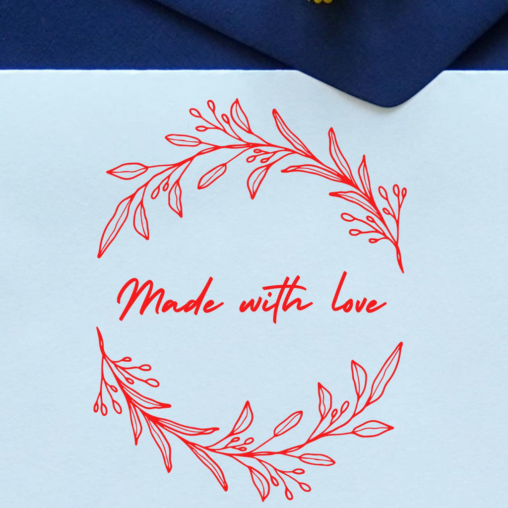 - PREMIUM CRAFTSMANSHIP: Handmade custom rubber stamp featuring elegant botanical design with "made with love" message, perfect for wedding stationery and personal touches. Laser-engraved for crisp, professional impressions every time.