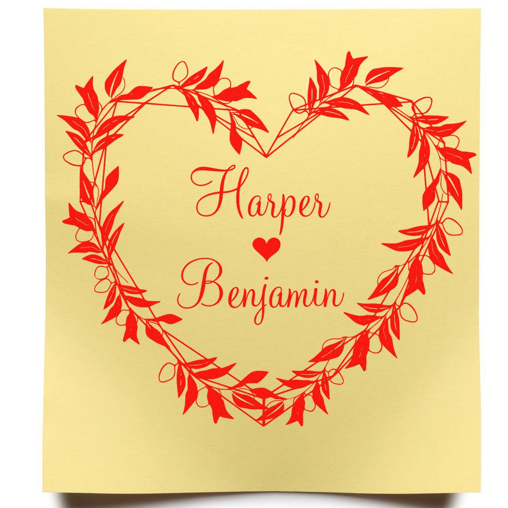 - VERSATILE DESIGN: The heart-shaped leafy vine design with "Harper" and "Benjamin" adds elegance to any wedding style, from rustic to modern. Use it on wedding favors, table settings, and guest books for a cohesive look.