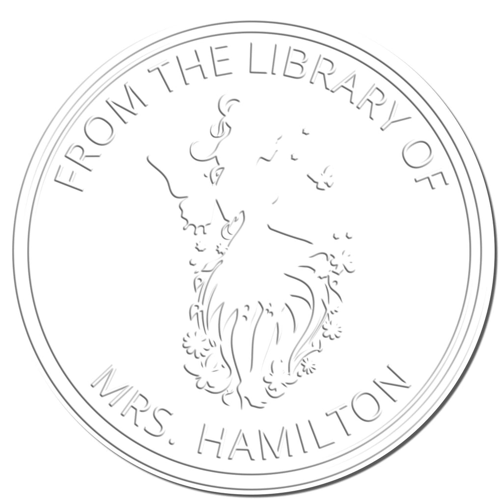 Enchanting Design Meets Practicality Imagine the delight on a young reader's face when they discover their name elegantly embossed on their very own book! Our custom bookplate maker embosser features a beautifully crafted silhouette of a fairy, poised in a joyful dance, surrounded by intricate floral elements and a whimsical butterfly. This enchanting design not only marks ownership but also fosters a love for reading, instilling pride and responsibility in every child.