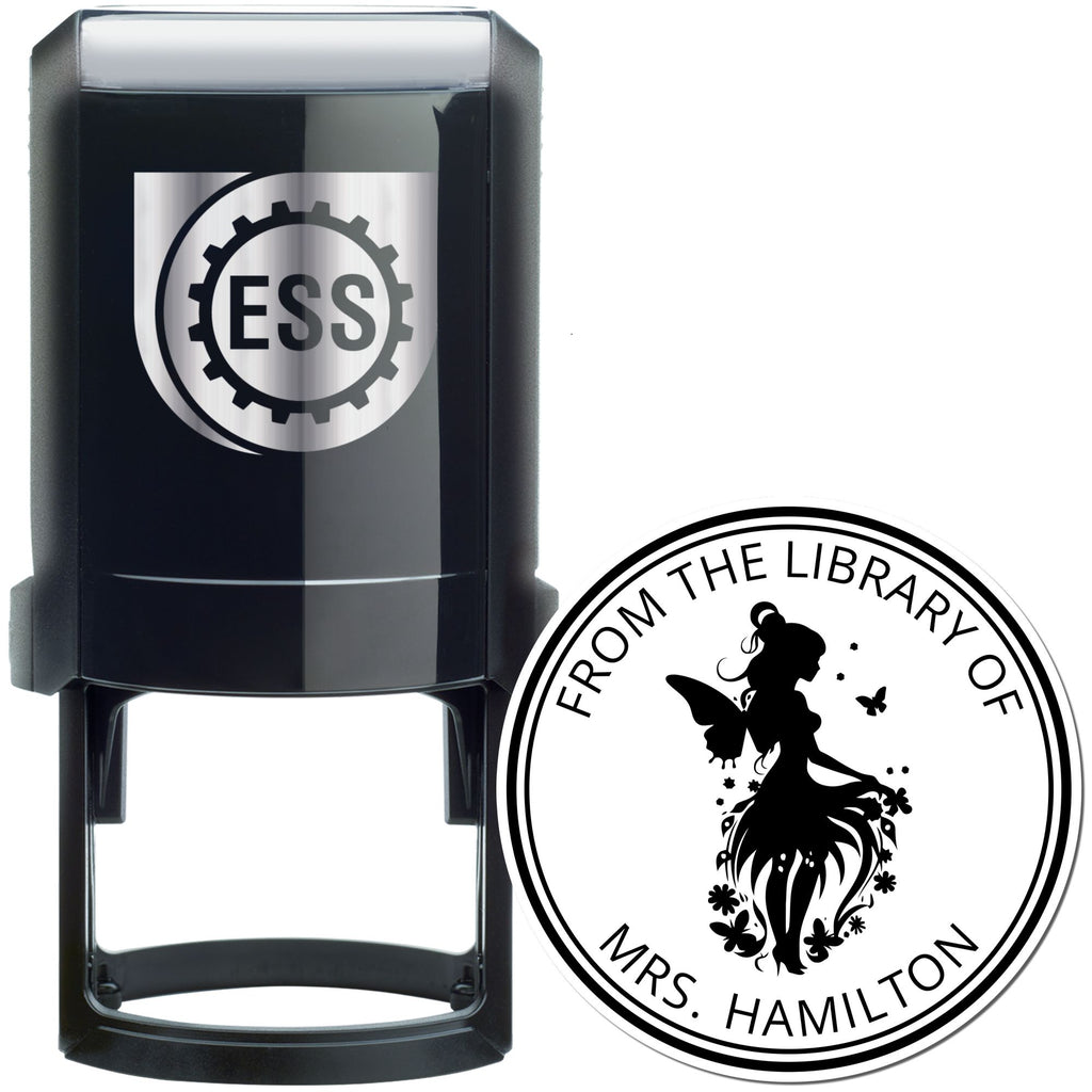 Perfect for bibliophiles and collectors, this magical stamp features an intricate design of a graceful fairy silhouette surrounded by detailed botanical elements. Each impression tells a story of ownership while adding an artistic touch to your collection. The easy-press mechanism makes marking your books effortless and enjoyable.