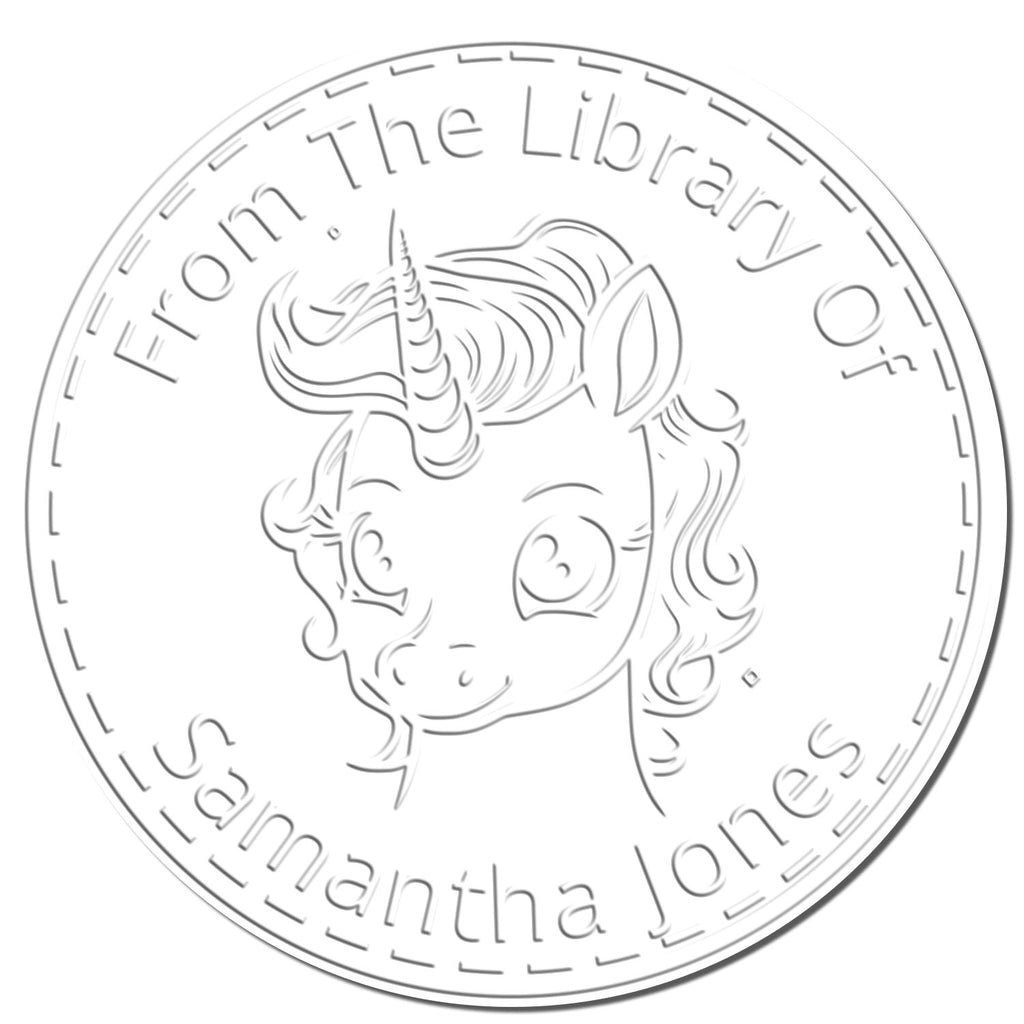 ✨ Unleash the Magic of Reading with Our Moonbeam Unicorn Hybrid Personalized Bookplate Embossing Seal! Transform your beloved books into enchanted treasures with this whimsical 1-5/8" embosser featuring an adorable cartoon unicorn design with flowing mane and sparkling eyes.