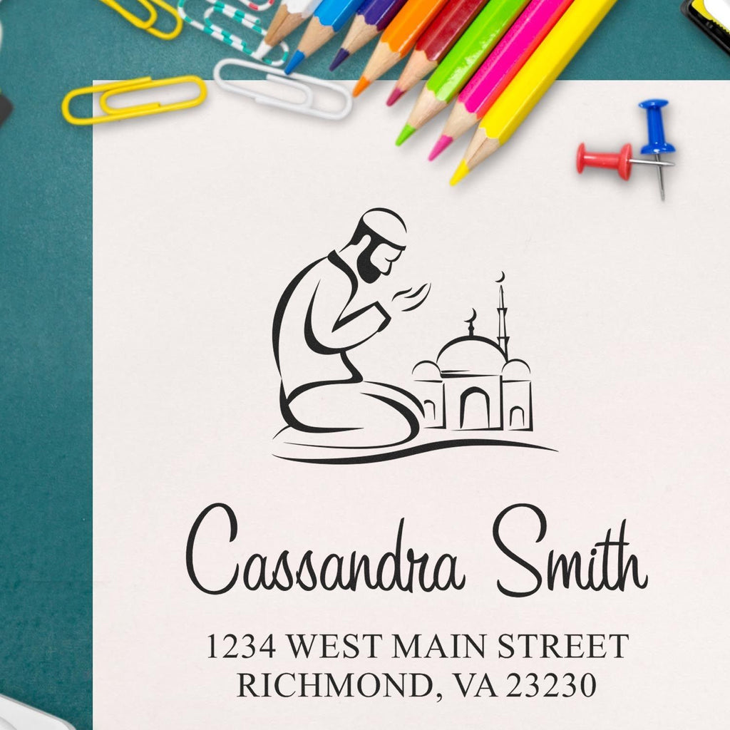 Save Time and Money Address stamps like the Muslim Prayful Thoughts Customized Mail Stamp make adding your address to documents and mail quick and easy, saving you precious time, especially during busy seasons like holidays or when sending out invitations. No more writing or printing your address repeatedly! This stamp ensures a consistent and professional look for your return address, which is especially beneficial for businesses. Over time, using a stamp is often more economical than buying labels or printing, considering the costs of ink and paper.