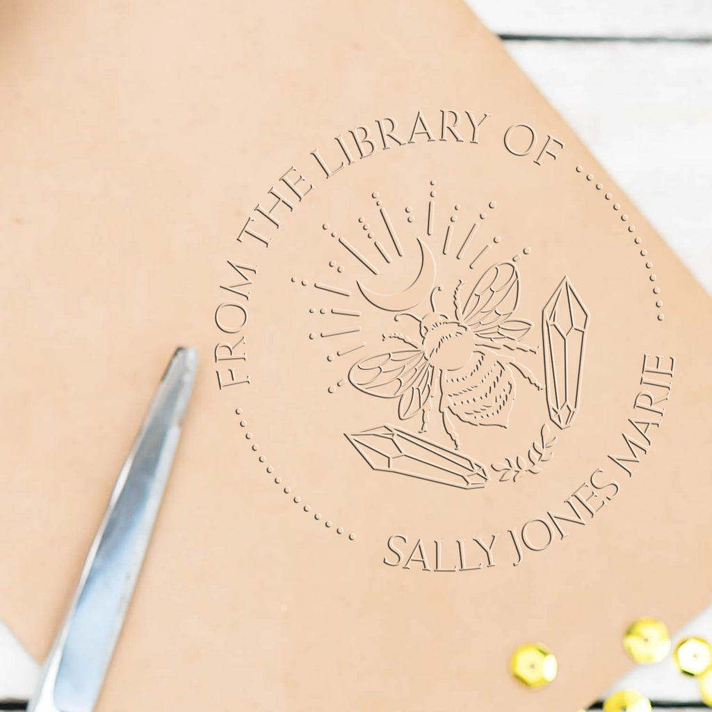 - PERSONALIZE WITH ELEGANCE: Transform your cherished books with our 1-5/8" premium embossing stamp, featuring an enchanting bee and moon design. Perfect for creating lasting impressions on your favorite reads.