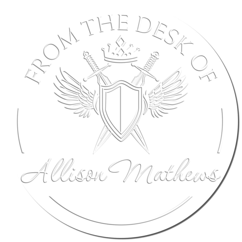 - MYTHICAL PROTECTION DESIGN: Featuring crossed swords, majestic wings, and a crowned shield, this 1-5/8" embosser creates stunning impressions that protect your literary legacy while adding a touch of fantasy to your collection.