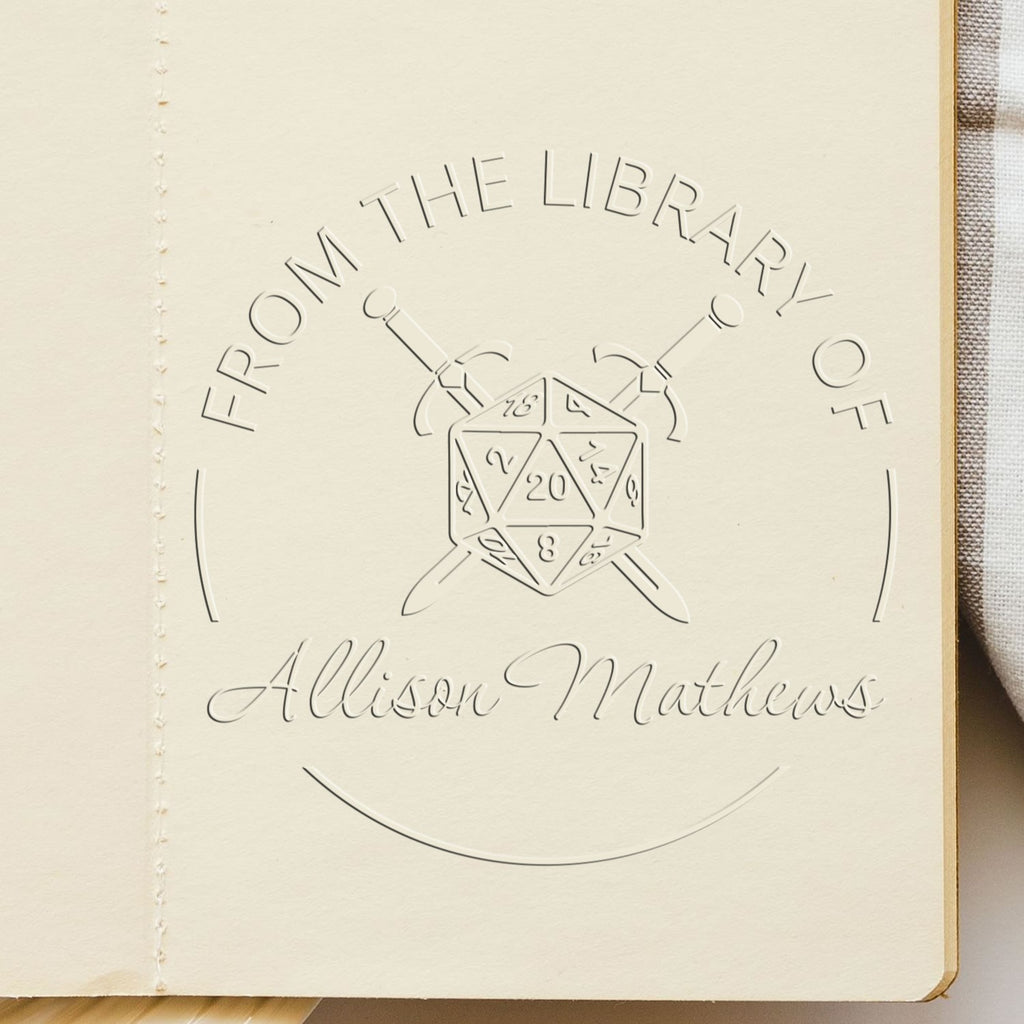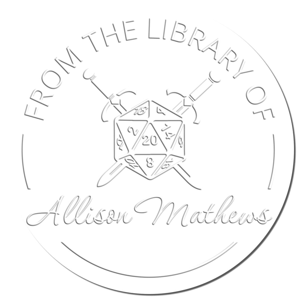 Crafted specifically for the discerning tabletop gaming enthusiast, this premium 1-5/8" embosser features an iconic 20-sided die centerpiece dramatically backed by crossed swords, creating an emblem worthy of any adventurer's library. Each impression leaves a crisp, professional mark that transforms your gaming guides, character journals, and campaign notes into personalized treasures.