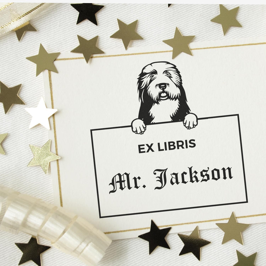 - PERSONALIZED LIBRARY ORGANIZATION: Transform your book collection with this charming Old English Sheepdog Ex Libris stamp, featuring a custom design that adds character while protecting your precious volumes. Perfect for bibliophiles who cherish their personal libraries.