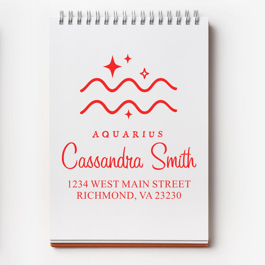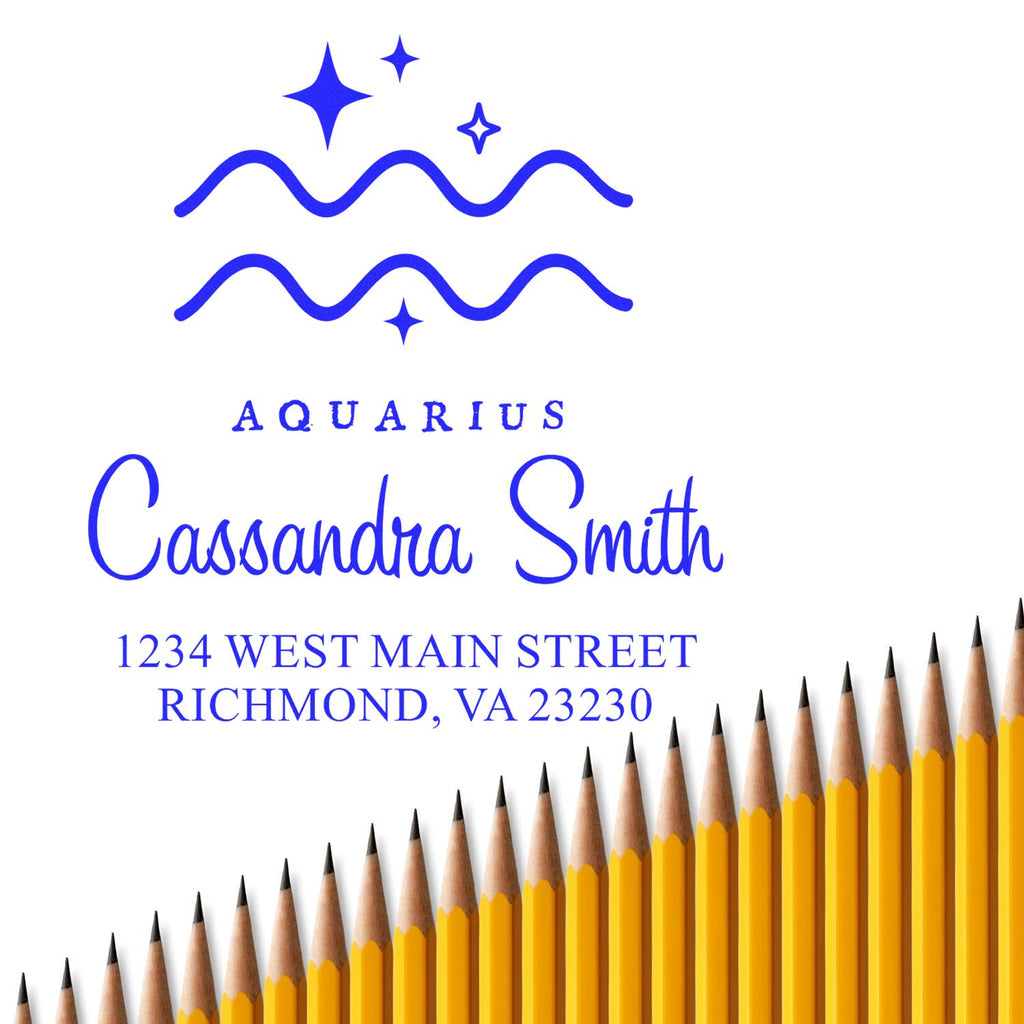 - PERSONALIZED ZODIAC DESIGN: Showcase your Aquarius spirit with this celestial-inspired address stamper, featuring your custom details surrounded by stars and astrological symbols. Perfect for adding a mystical touch to your correspondence.
