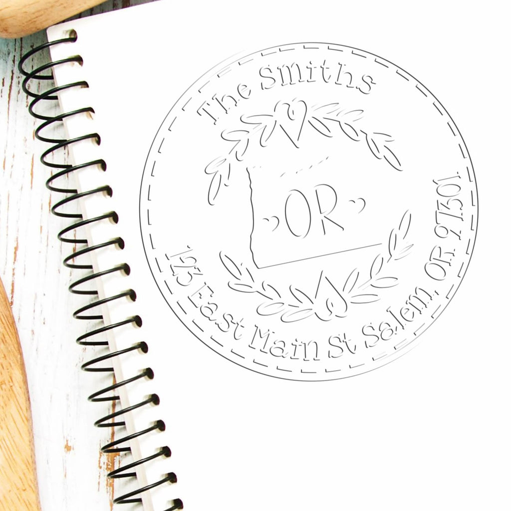 - ELEVATE YOUR STAMPING GAME with our Oregon Decorative Wreath Customizable Mailing Address Hybrid Embosser Seal! Achieve flawless impressions every time with our stylish tools designed for effortless use. Perfect for adding a touch of elegance to your correspondence!