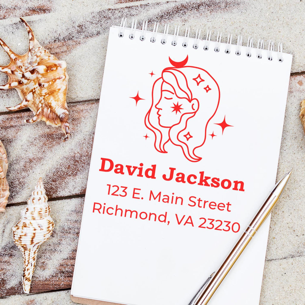 - PERSONALIZED ELEGANCE: Transform your correspondence with this beautifully crafted Virgo zodiac address stamp, featuring a sophisticated side profile design that adds a touch of celestial charm to your mailings.