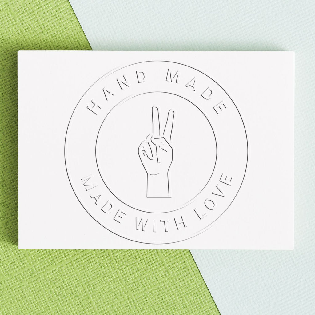 - MODERN MINIMALIST DESIGN: Showcase your work with our sleek "Hand Made" and "Made with Love" embossing design, featuring a contemporary peace sign. Elevates your handcrafted items with sophisticated style.