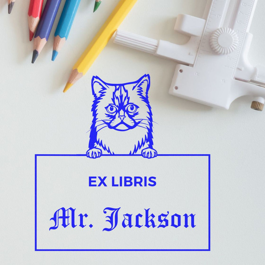 Personalizable Ex Libris Classroom Stamper with Asian Semi Longhair Cat Highlights and Features