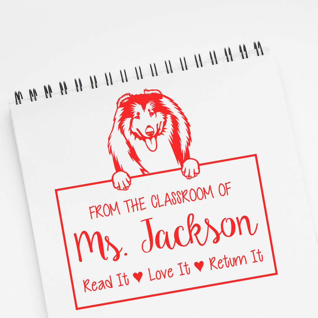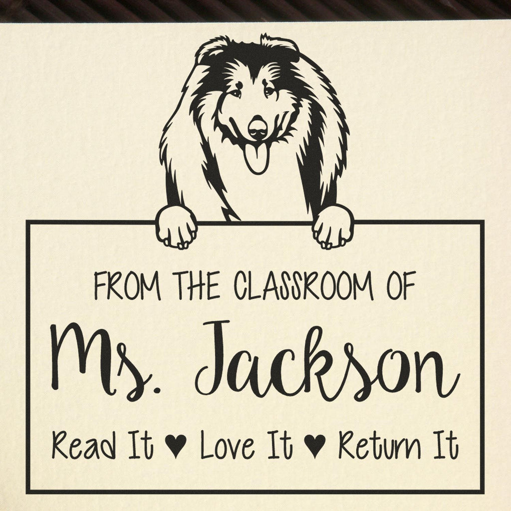 Personalizable Teacher Book Ownership Stamp with Collies Dog Highlights and Features