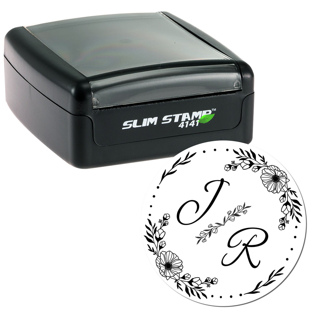 - CHIC DESIGN: Featuring a graceful cursive "J" and "R" surrounded by a floral pattern, this name stamp exudes sophistication. The dotted border adds a refined finish, perfect for any occasion.