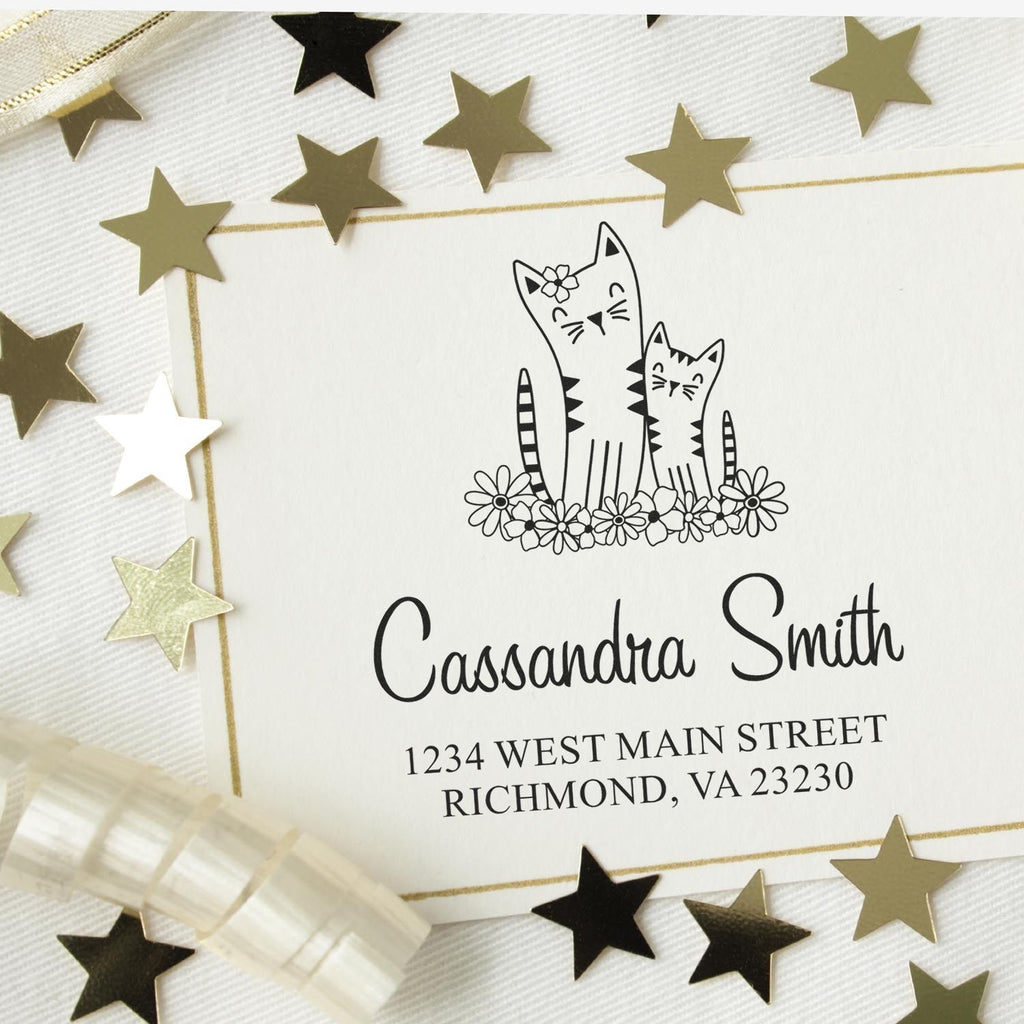 - PERSONALIZED FELINE CHARM: Showcase your love for cats with this adorable pre-inked stamp featuring a charming couple of cats design. Perfect for cat lovers who want to add a personal touch to their correspondence.