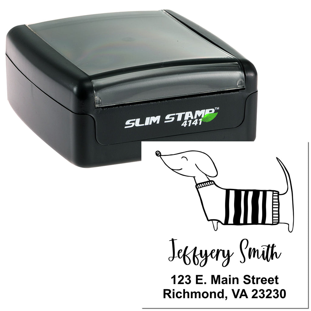 Keywords: Customized Envelope Stamper, Customized Return Address Stamp, Dashing Dachshund Stamp, Portable Stamping Solution, Dog Lover Stamp.