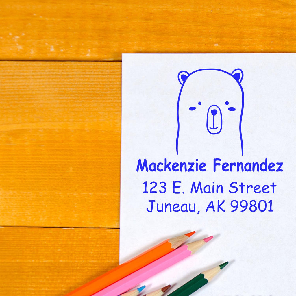 Portable Pre-Inked Adorable Bear Handcrafted Return Address Stamper Highlights and Features