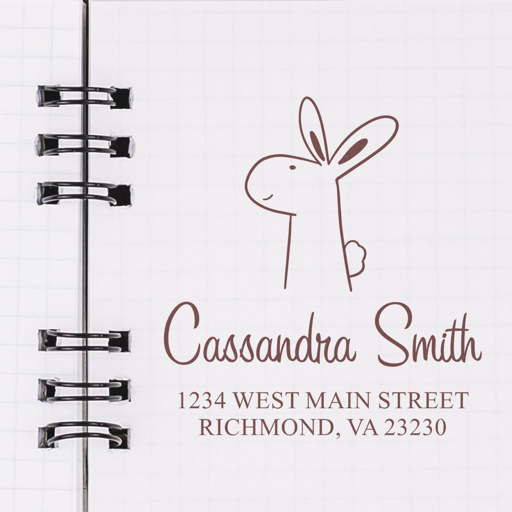 Unlock the power of efficiency and professionalism with our premium address stamps. Get ready to simplify your daily tasks and add a creative touch to your mail with the Portable Pre-Inked Bouncy Bunny Made To Order Return Address Stamper. Order today for exceptional service and let your correspondence hop to life!