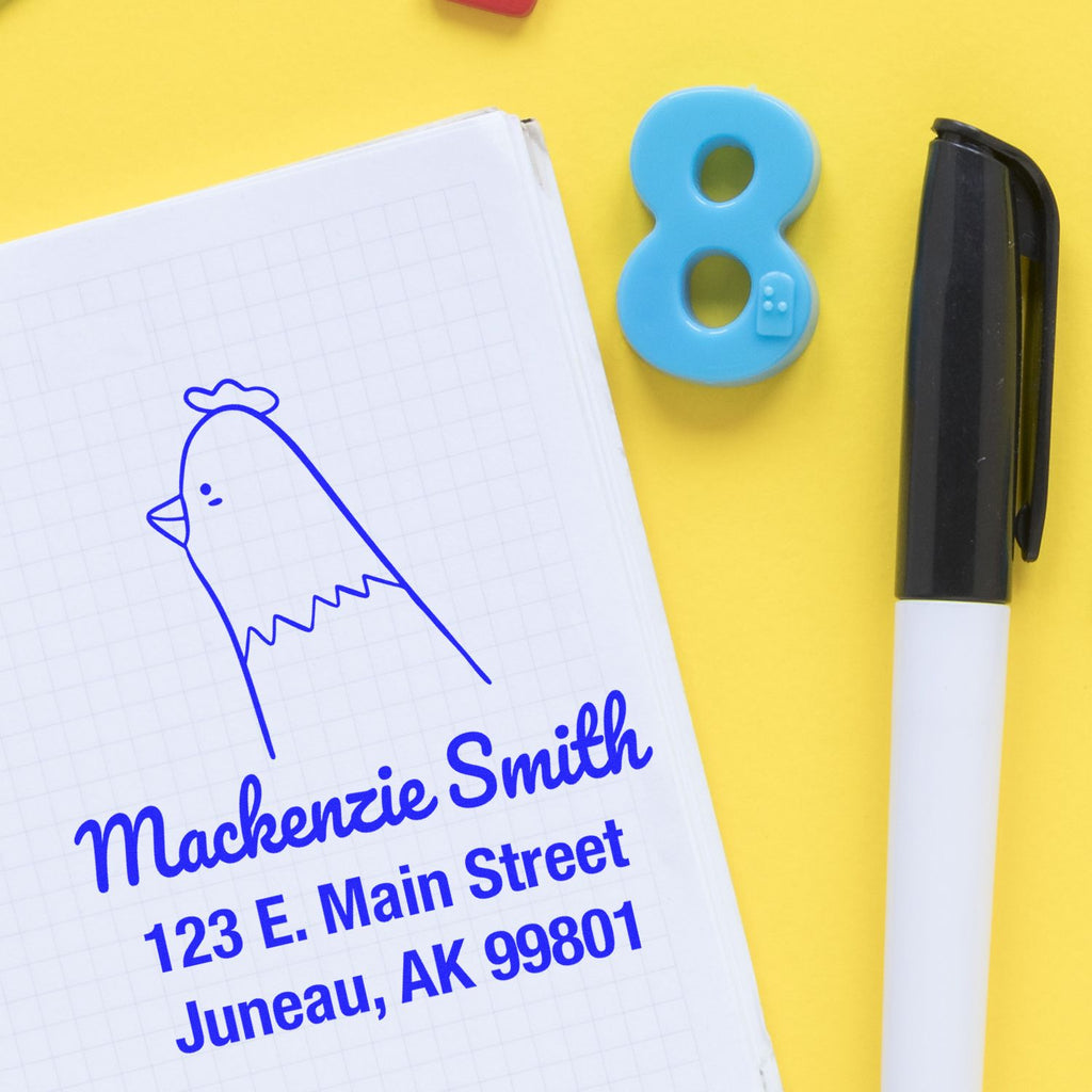 Portable Pre-Inked Clucking Chicken Made To Order Name And Address Stamper Highlights and Features
