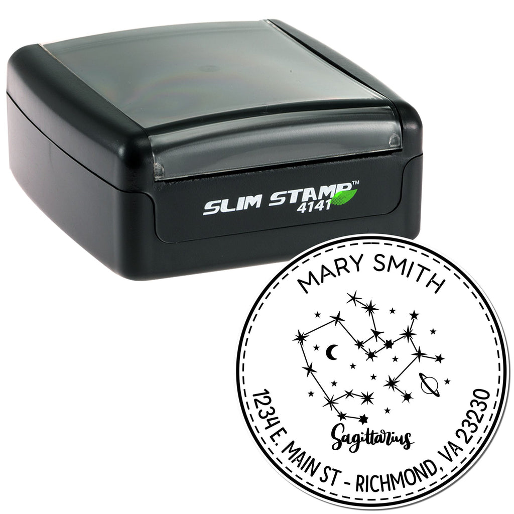 Portable Pre-Inked Constellation Sagittarius Custom Made Name And Address Stamper Highlights and Features