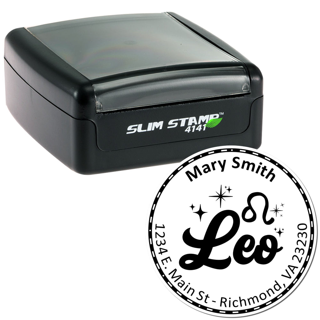 Keywords: Personalized Address Stamper, Customized Address Stamper, Portable Address Stamp, Leo Zodiac Stamp, Small Business Branding.