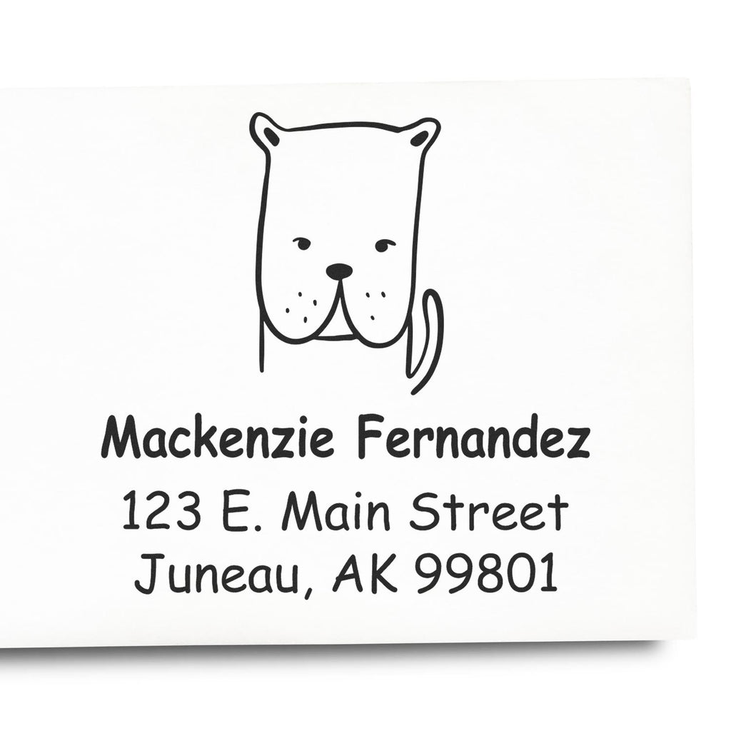 Why Choose Our Darling Dog Home Stamper? Discover the ease and professionalism of our address stamps—perfect for any busy home or office. If you often send mail or need to share your contact details, our address stamps will help you get the job done faster while adding a polished touch to your correspondence. The minimalist black and white illustration of a cartoon dog's head and upper body adds a playful character to your stamping tasks. With floppy ears, a round nose, and a gentle expression, this design is sure to bring a smile to anyone who sees it!