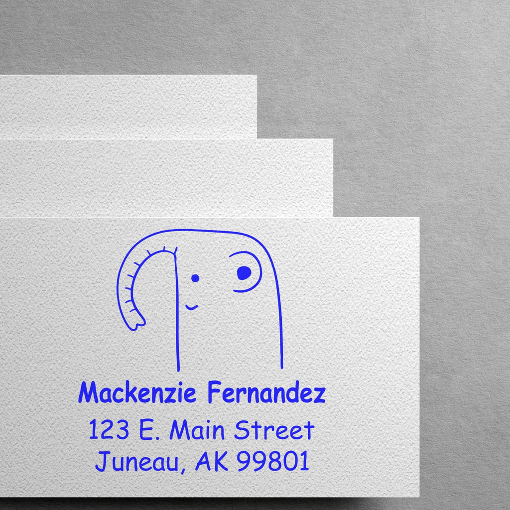 Introducing the Portable Pre-Inked Endearing Elephant Custom Designed Return Address Stamp! Are you ready to add a touch of whimsy and professionalism to your correspondence? Meet the Portable Pre-Inked Endearing Elephant Custom Designed Return Address Stamp, your new favorite tool for all your mailing needs! This delightful stamp features a playful cartoon illustration of an elephant's face, complete with a large, curved ear and a friendly, inviting eye. With its charming design and high-quality functionality, this stamp is perfect for parents who love personalized stationery and want to make their mail stand out, whether it’s for invitations, thank you cards, or holiday greetings.