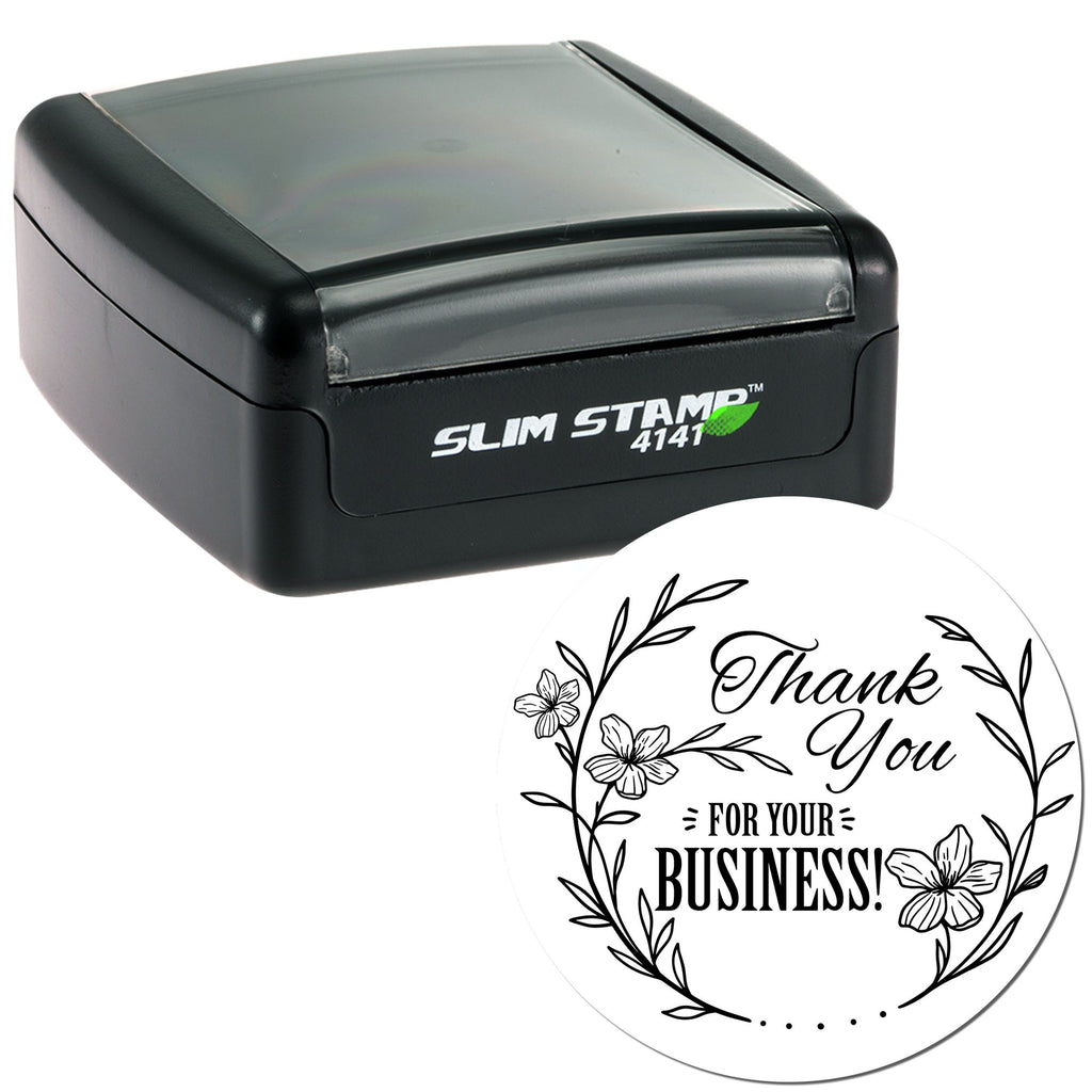 Elevate your business's personal touch with our Portable Pre-Inked Floral Gratitude Custom Thank You Wood Stamp - the perfect blend of elegance and efficiency for the modern entrepreneur. This beautifully crafted 1-5/8" round stamp features an enchanting floral design surrounding your heartfelt "Thank you for your business!" message, making every impression a masterpiece of appreciation.