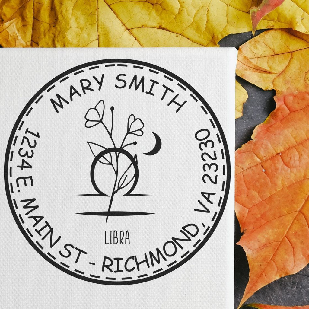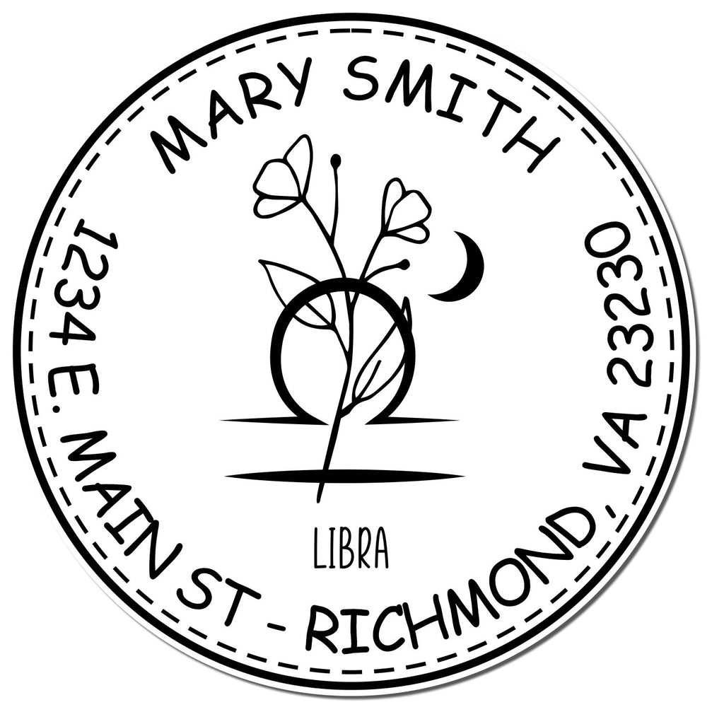 - PROFESSIONAL ELEGANCE: Showcase your unique style with this Libra-themed address stamper, featuring a sophisticated double-ring border and floral accents that make your correspondence stand out. Perfect for both personal and business use.