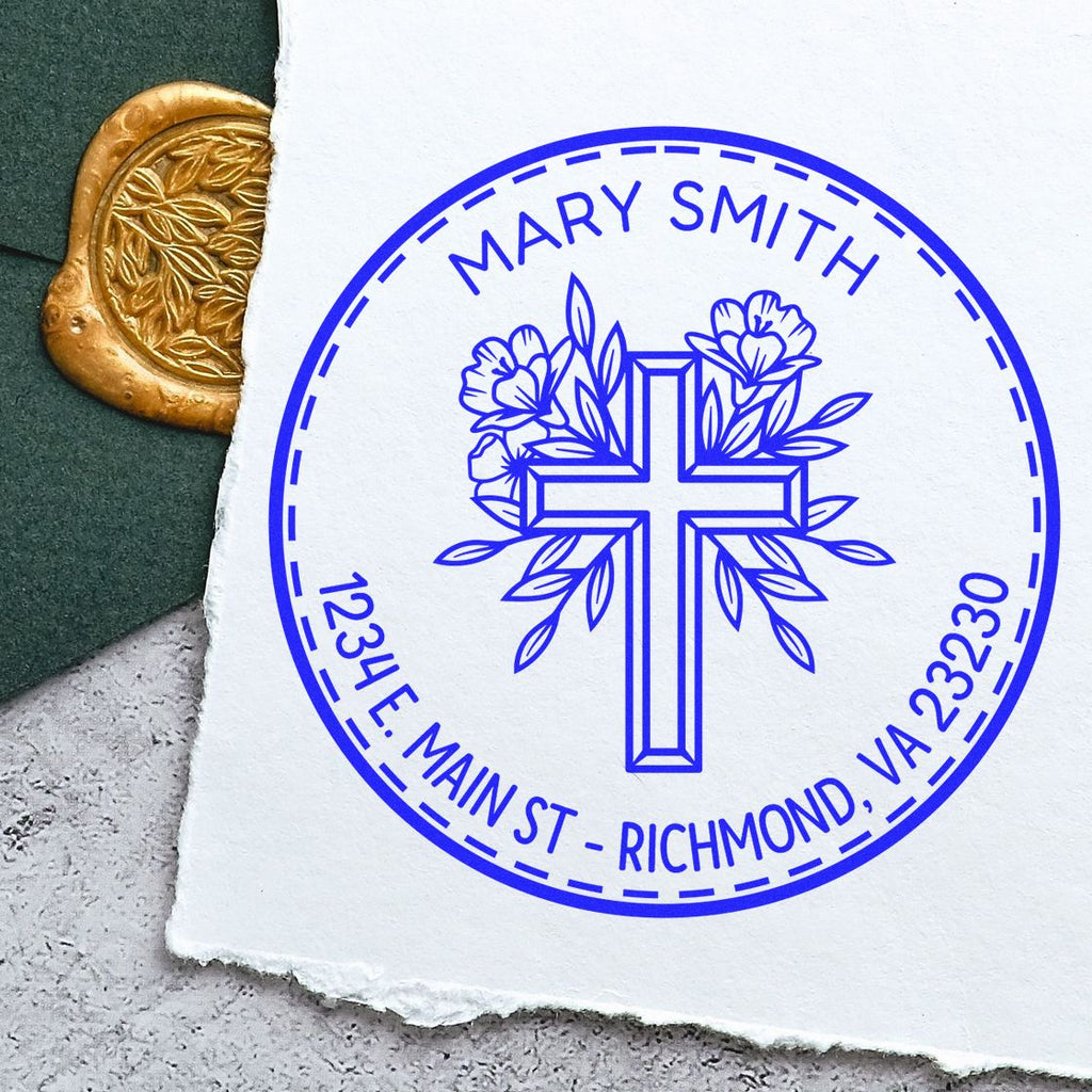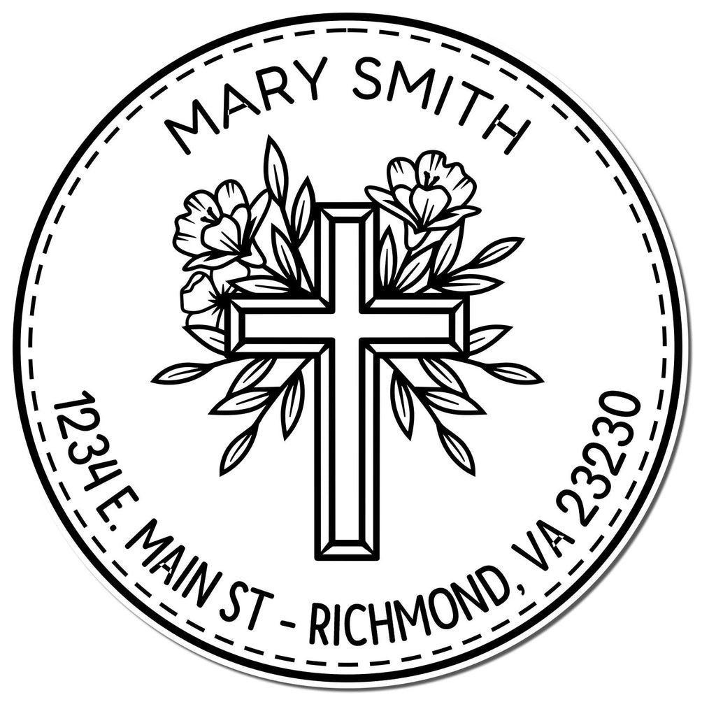 Sleek and Stylish Design Our address stamp features a stunning Hallowed Cross design, elegantly encircled by a double ring border that adds a touch of sophistication to your mail. The impression size is a perfect 1-5/8" in diameter, making it just the right size to stand out without overwhelming your envelopes. Your name will be beautifully displayed in the top arc, with your address or a meaningful saying at the bottom arc, ensuring that every piece of mail you send reflects your personal style and faith.